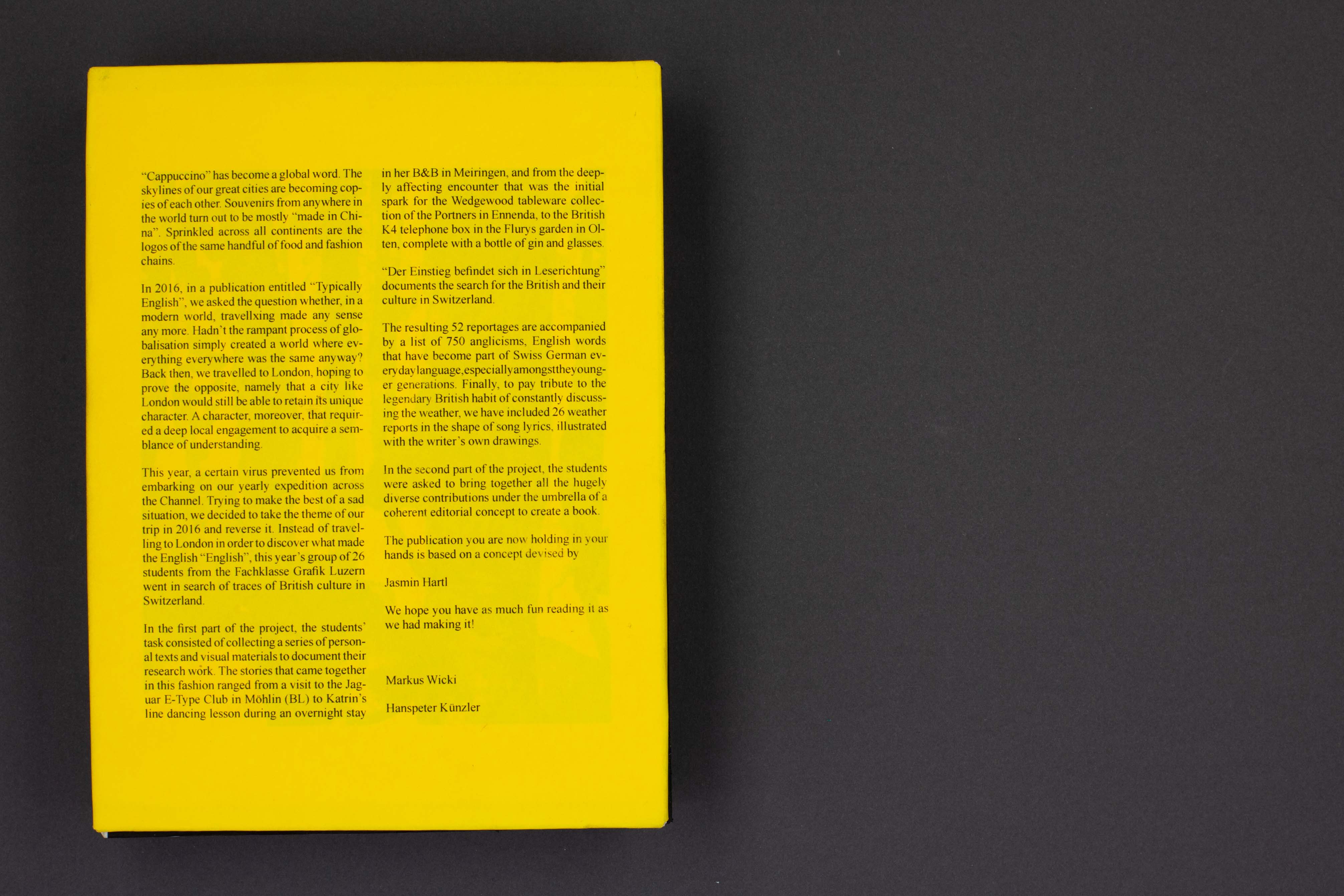 Als alternative zu der alljährlichen Studienreise nach London befassten wir uns damit, was englisches in der Schweiz zu finden ist. Jeder erarbeitete eine Recherchearbeit zu zwei Themenbereichen. Dies wurde zusammengetragen zu einer eigengestalteten Publikation.
